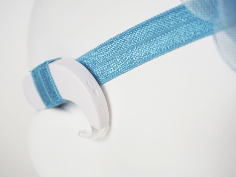 Dopasujesz ją do każdego nausznego aparatu słuchowego i / lub procesora mowy (część zewnętrzna implantu ślimakowego). Wszystko za sprawą dwóch kieszonek umieszczonych we wsuwkach po bokach – mniejsza mieści nawet niewielki aparat, a większa – procesor mowy (zdjęcie nr 1.). Dodatkowo opaska umożliwia ustawienie pozycji wsuwek dokładnie za uchem, tak jak jest to zalecane przez audiologów.