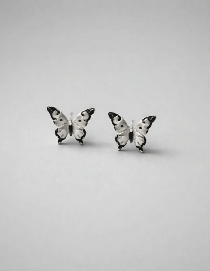 Kolczyki motyl - czarno-białe