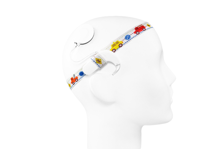 Dopasujesz ją do każdego nausznego aparatu słuchowego i / lub procesora mowy (część zewnętrzna implantu ślimakowego). Wszystko za sprawą dwóch kieszonek umieszczonych we wsuwkach po bokach – mniejsza mieści nawet niewielki aparat, a większa – procesor mowy (zdjęcie nr 1.). Dodatkowo opaska umożliwia ustawienie pozycji wsuwek dokładnie za uchem, tak jak jest to zalecane przez audiologów.