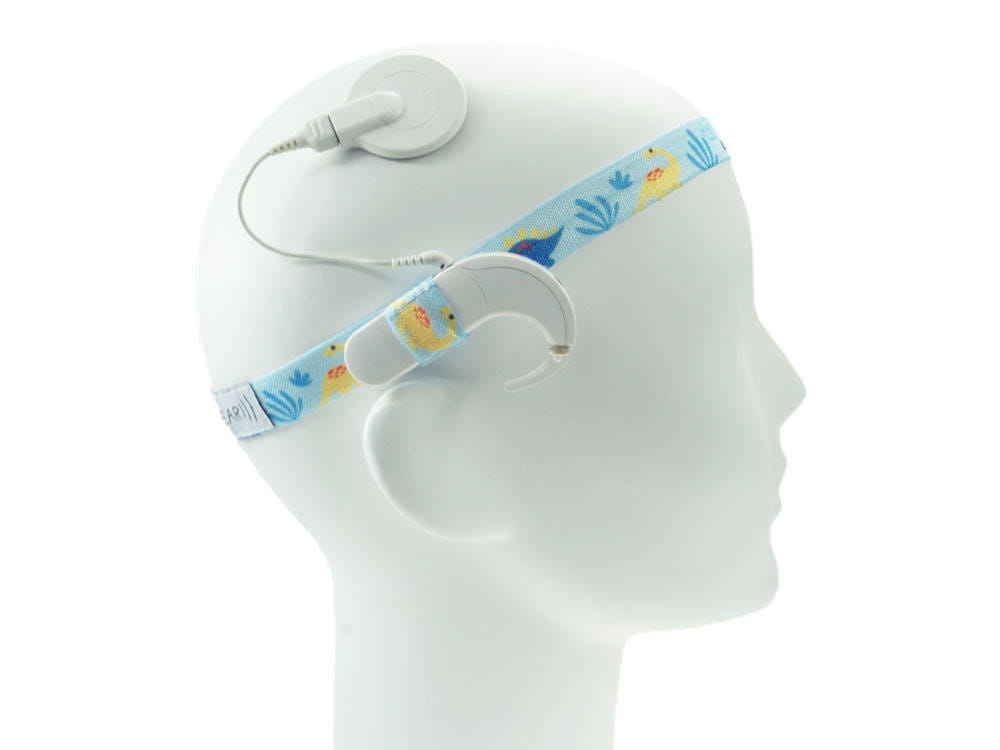 Dopasujesz ją do każdego nausznego aparatu słuchowego i / lub procesora mowy (część zewnętrzna implantu ślimakowego). Wszystko za sprawą dwóch kieszonek umieszczonych we wsuwkach po bokach – mniejsza mieści nawet niewielki aparat, a większa – procesor mowy (zdjęcie nr 1.). Dodatkowo opaska umożliwia ustawienie pozycji wsuwek dokładnie za uchem, tak jak jest to zalecane przez audiologów.