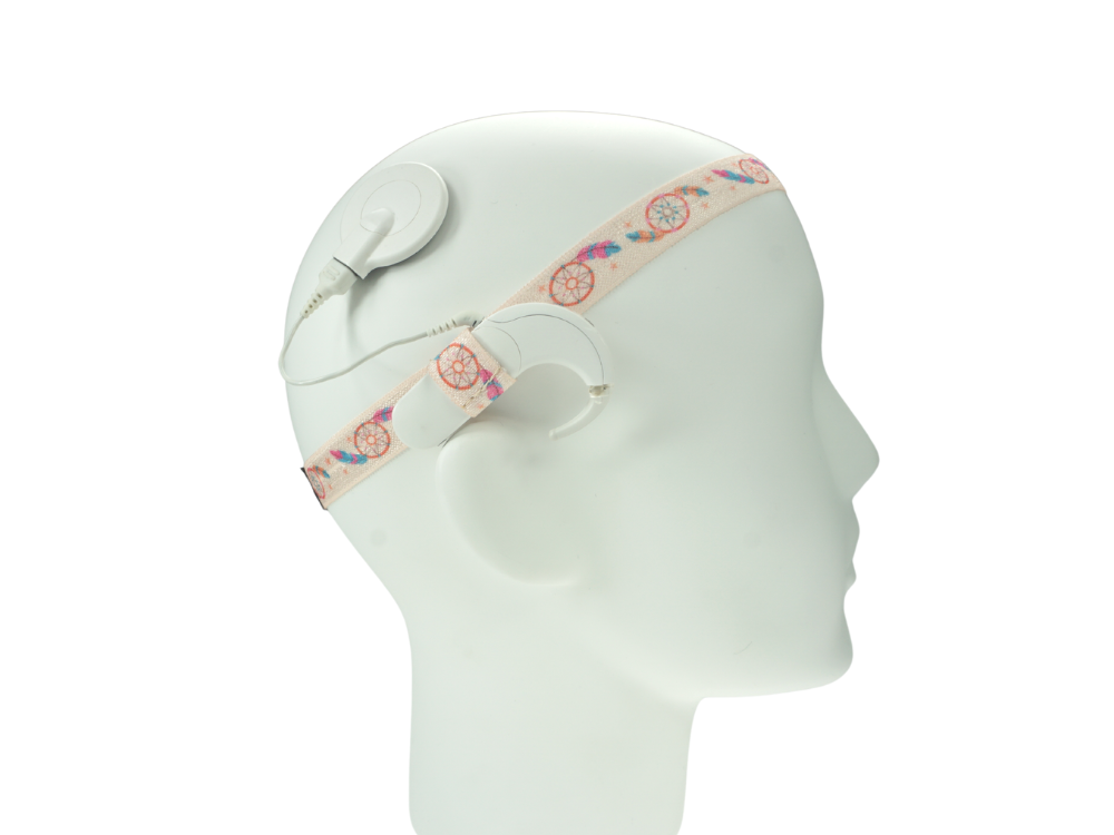 Dopasujesz ją do każdego nausznego aparatu słuchowego i / lub procesora mowy (część zewnętrzna implantu ślimakowego). Wszystko za sprawą dwóch kieszonek umieszczonych we wsuwkach po bokach – mniejsza mieści nawet niewielki aparat, a większa – procesor mowy (zdjęcie nr 1.). Dodatkowo opaska umożliwia ustawienie pozycji wsuwek dokładnie za uchem, tak jak jest to zalecane przez audiologów.