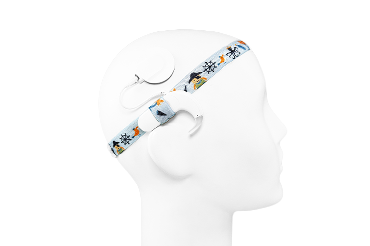 Dopasujesz ją do każdego nausznego aparatu słuchowego i / lub procesora mowy (część zewnętrzna implantu ślimakowego). Wszystko za sprawą dwóch kieszonek umieszczonych we wsuwkach po bokach – mniejsza mieści nawet niewielki aparat, a większa – procesor mowy (zdjęcie nr 1.). Dodatkowo opaska umożliwia ustawienie pozycji wsuwek dokładnie za uchem, tak jak jest to zalecane przez audiologów.