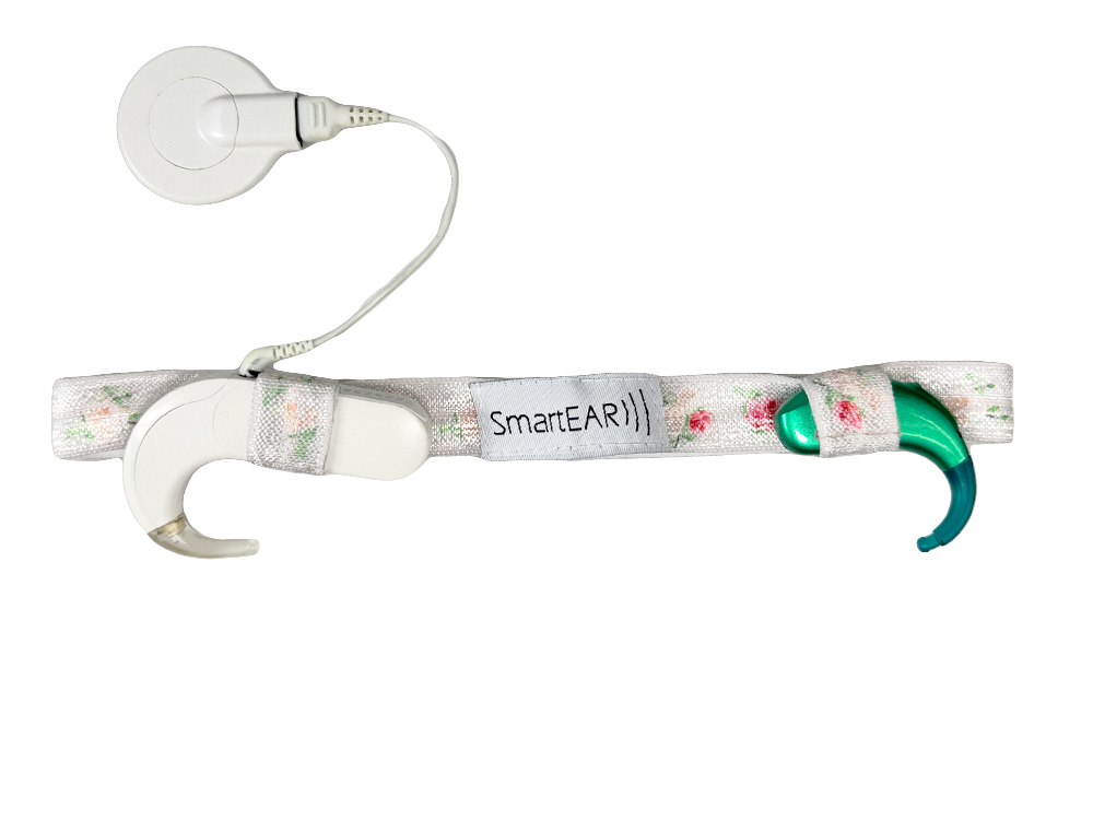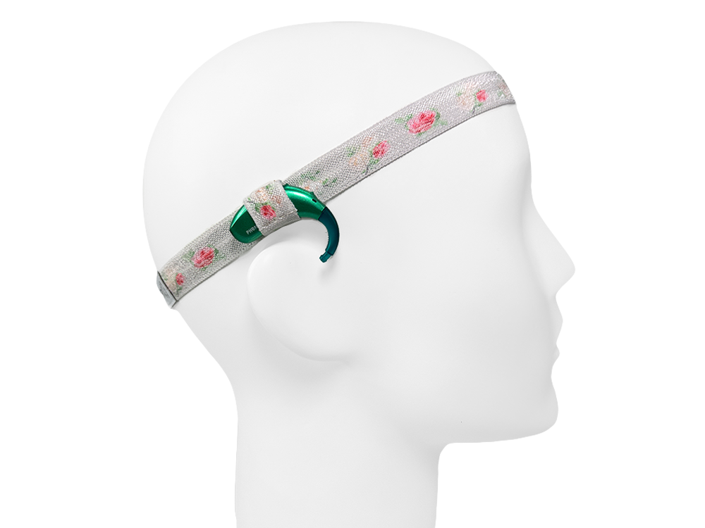 Dopasujesz ją do każdego nausznego aparatu słuchowego i / lub procesora mowy (część zewnętrzna implantu ślimakowego). Wszystko za sprawą dwóch kieszonek umieszczonych we wsuwkach po bokach – mniejsza mieści nawet niewielki aparat, a większa – procesor mowy (zdjęcie nr 1.). Dodatkowo opaska umożliwia ustawienie pozycji wsuwek dokładnie za uchem, tak jak jest to zalecane przez audiologów.
