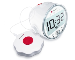 Cyfrowy zegar budzący za pomocą głośnego alarmu oraz światłem i wibracją za pomocą poduszki wibracyjnej. Posiada wyraźny wyświetlacz i duże pokrętła. Umożliwia regulacje intensywności. Jego wymiary to 121x92x108mm, waga 390g. Pracuje przy braku zasilania. Urządzenie Visit umożliwia informowanie sygnałem świetlnym, wibracyjnym lub dźwiękowym kiedy ktoś dzwoni do drzwi. Posiada funkcje lampki nocnej.